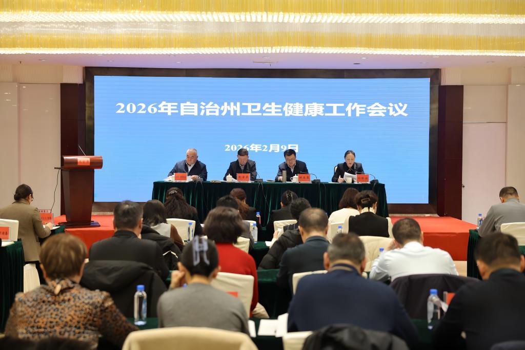 2月9日下午,2026年自治州卫生健康工作会议在博尔塔拉宾馆召开。会议传达学习2026年全国、自治区卫生健康工作会议精神,系统总结2025年及“十四五”全州卫生健康工作成效,全面部署2026年重点任务,为“十五五”卫生健康事业开好局、起好步明确方向。会议由州人民政府副秘书长包金泉主持,州卫健委党组书记、副主任刘珍玲作工作报告,州人民政府副州长、州党委教育工委副书记杜应昆出席会议并讲话。